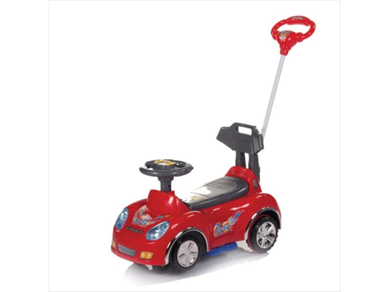 Детская каталка Jetem Cabrio оснащена дополнительной ручкой-толкателем, удобным сиденьем со спинкой,выдвижными подножками, емкостью для игрушек, клаксоном (звуковая кнопка на руле) и 5 мелодиями.