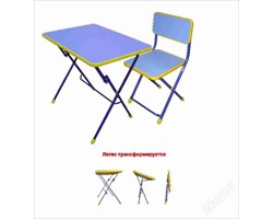 Складной комплект детской мебели «Алина» предназначен для детей от 3-7 лет. На металлическом каркасе. В комплект входит стол и стул. Столешница изготовлена из материала ЛДСП. Стул с пластмассовым сиденьем. Легко трансформируется!