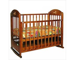 Детская кроватка, опускаемое боковое ограждение, полозья для качания, ящик, материал - натуральная древесина